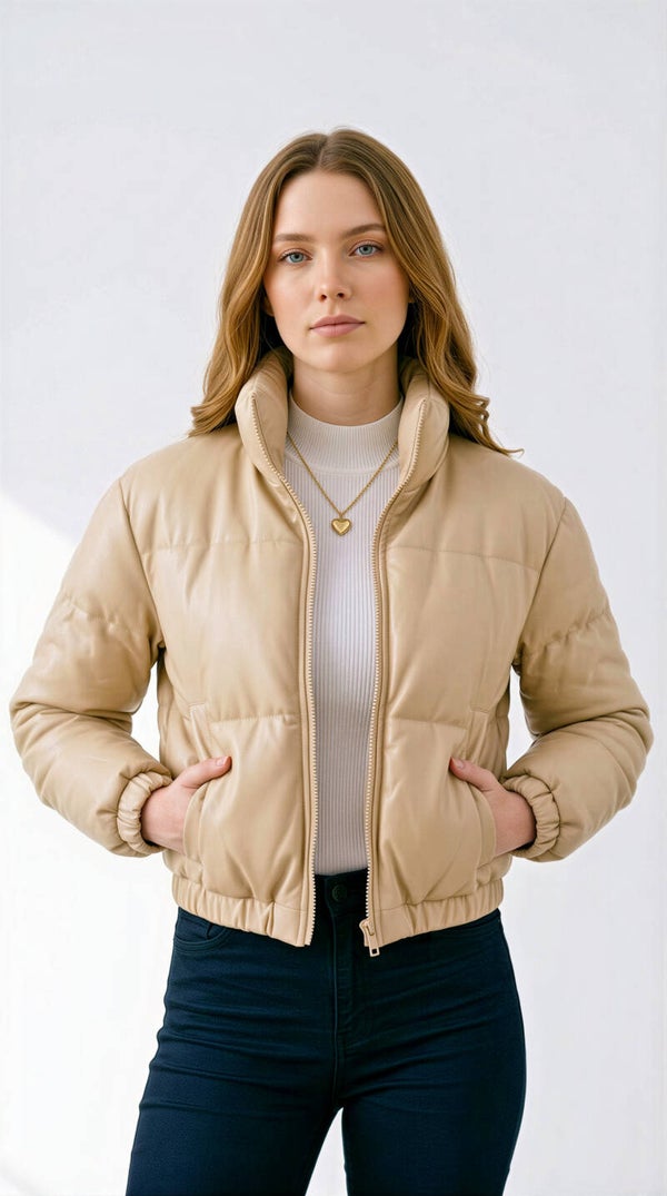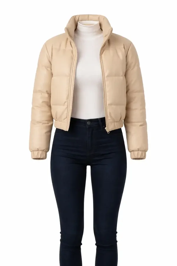 Stay warm without sacrificing style. This puffer jacket features a clean silhouette, soft neutral tone, and a comfortable fit that makes it perfect for everyday wear.