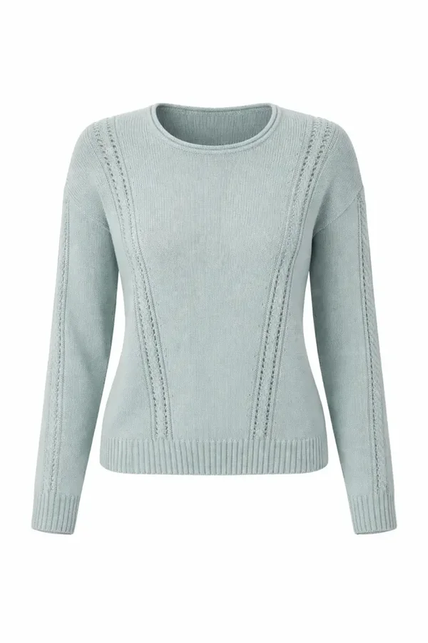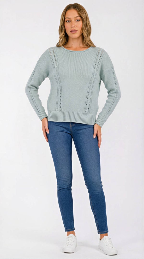 A timeless piece for your everyday wardrobe. This soft knit sweater features delicate textured details that add a subtle touch of elegance while keeping you comfortable all day. Perfect for effortless styling, whether you're dressing it up or keeping it casual, this piece brings confidence and simplicity together in one look.