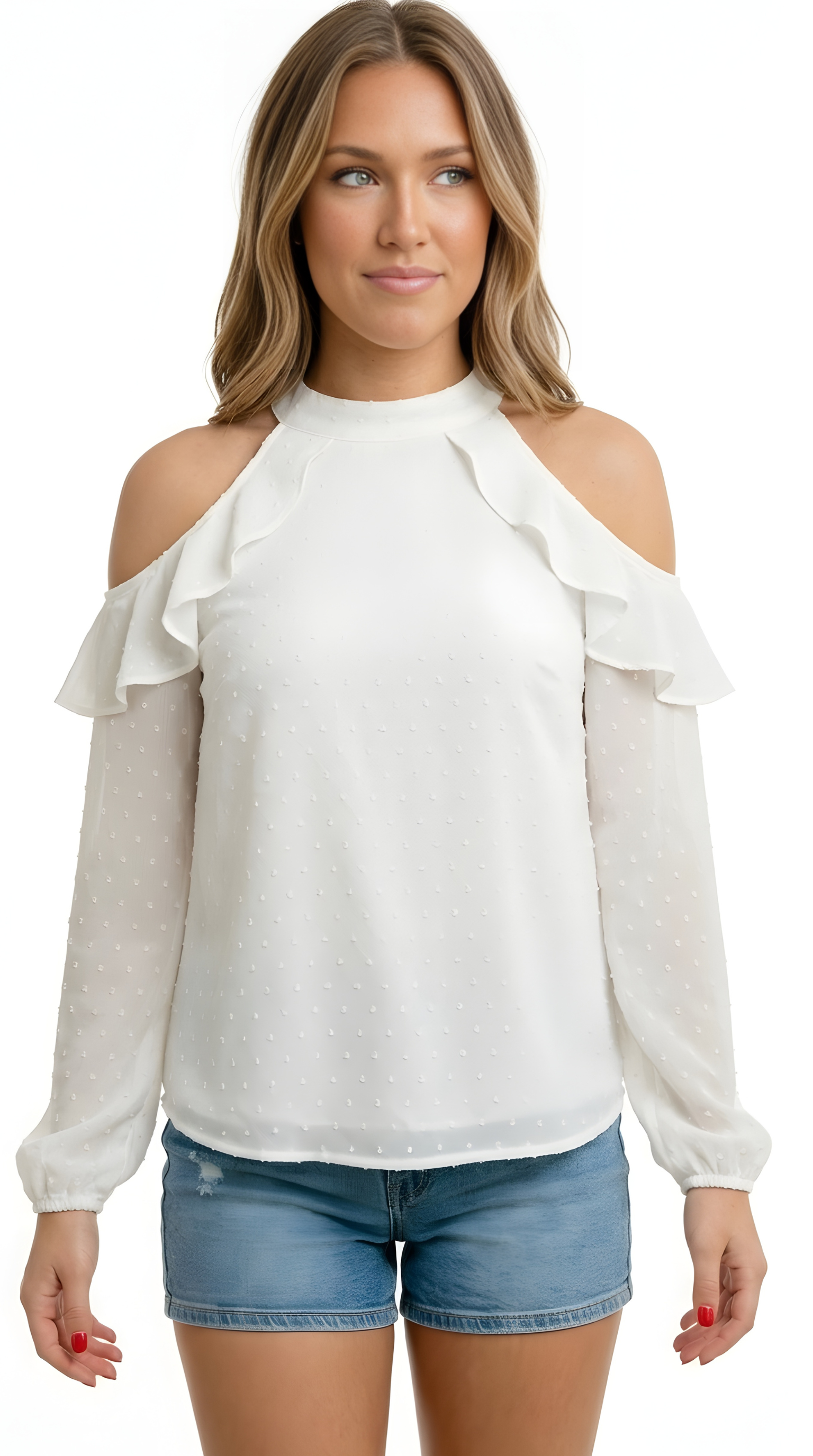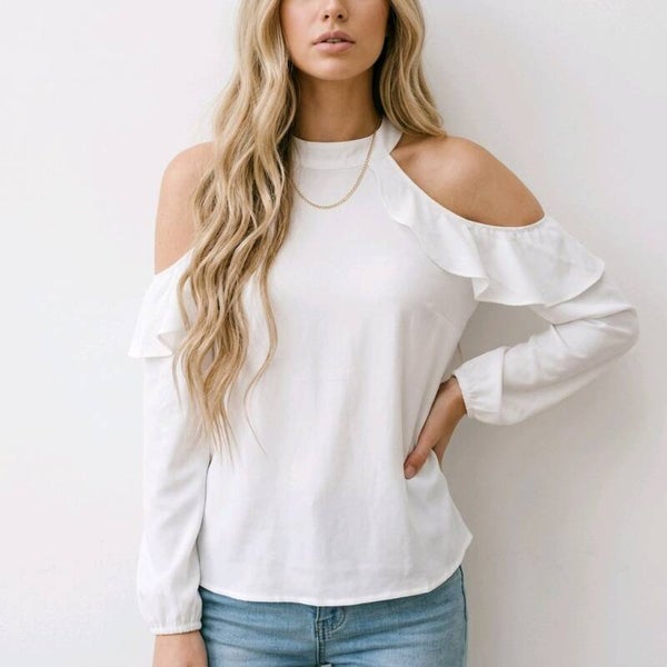 The Mabelinda Soft Elegance Cold Shoulder Top is designed to make you feel confident, feminine, and put together without even trying. Featuring delicate ruffle details, a flattering cold shoulder cut, and a soft textured fabric, this piece brings a romantic and modern touch to your everyday style.
