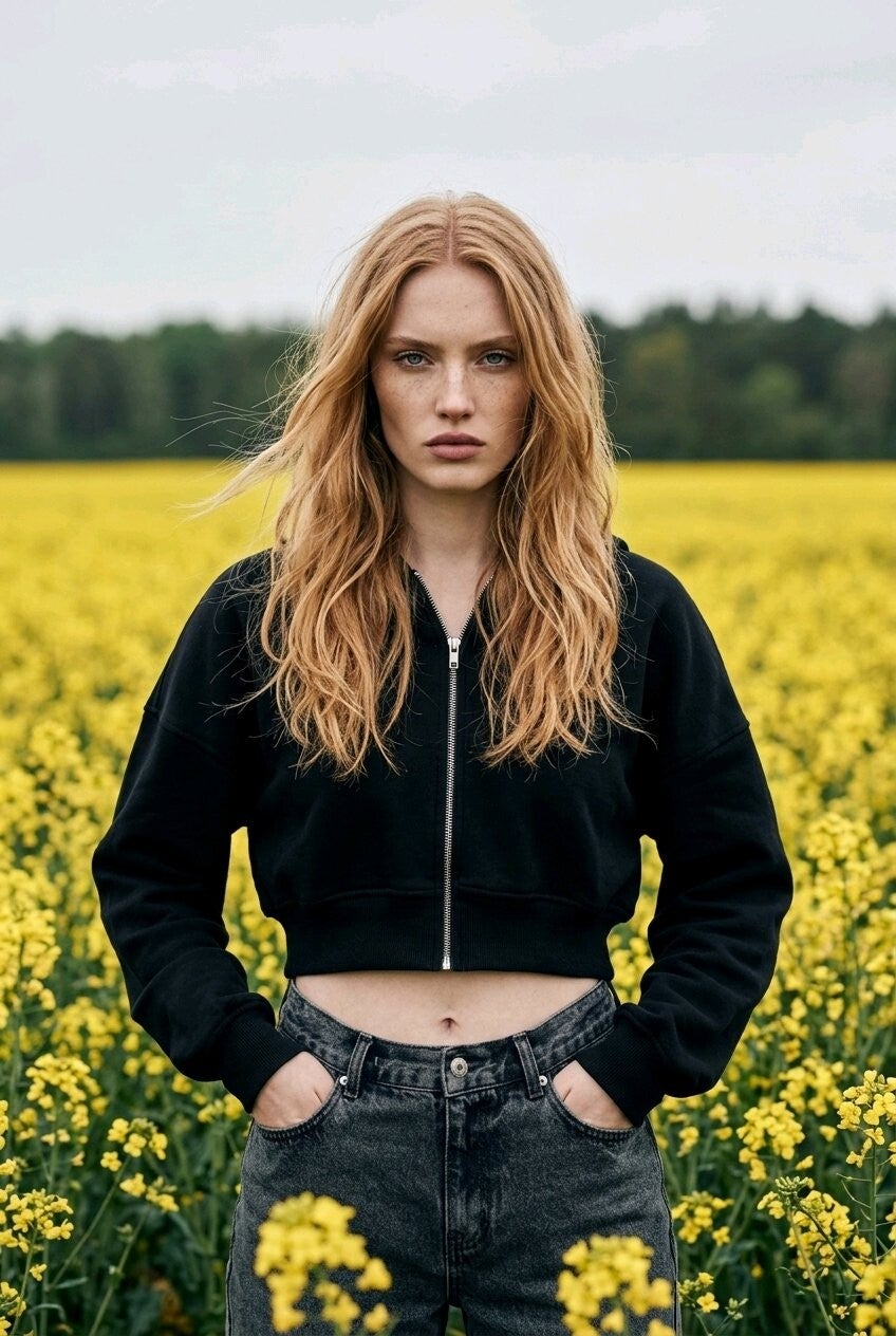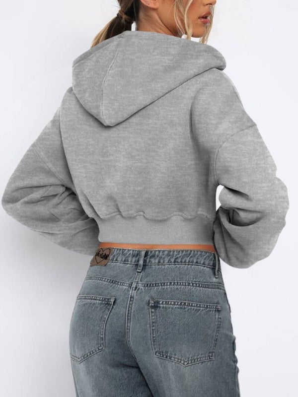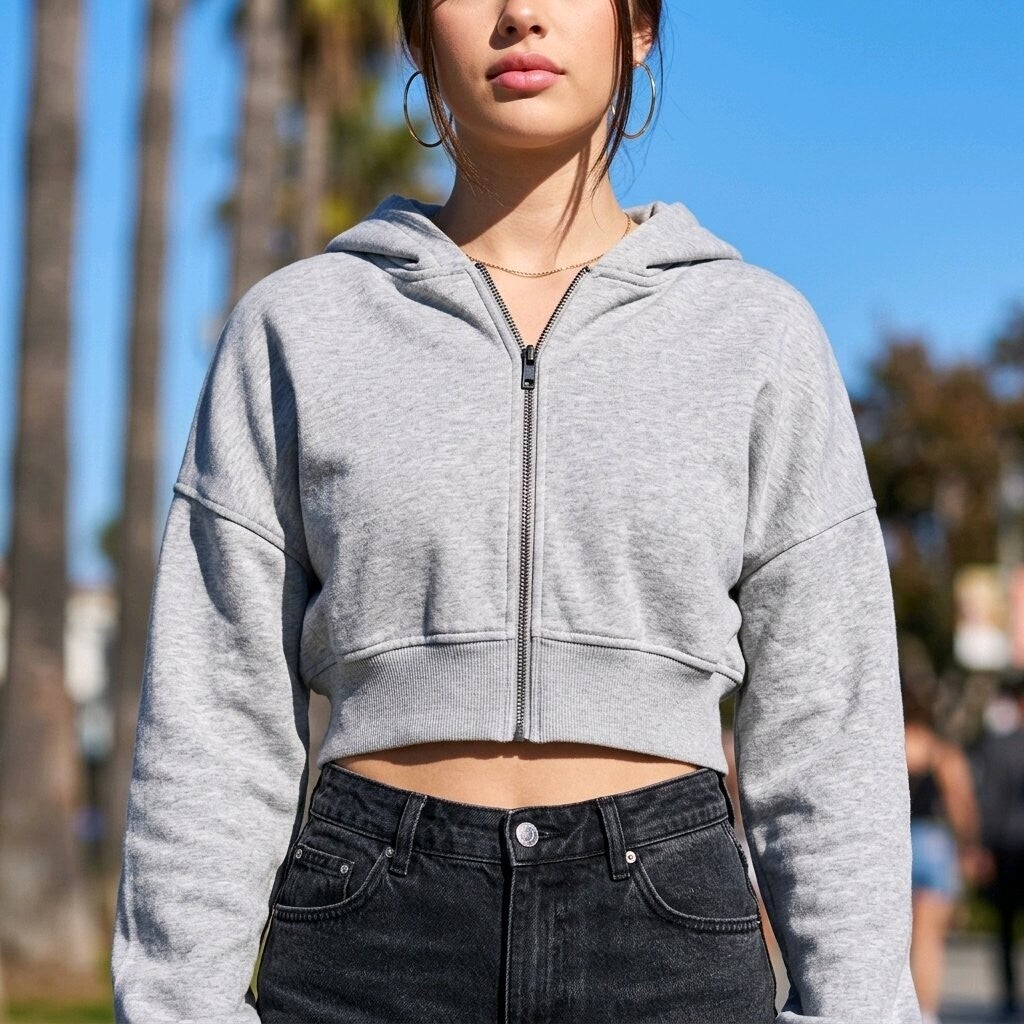 This cropped zip-up hoodie is the perfect mix of comfort and style. Designed with a relaxed fit and soft fabric, it’s easy to throw on while still looking effortlessly put together.