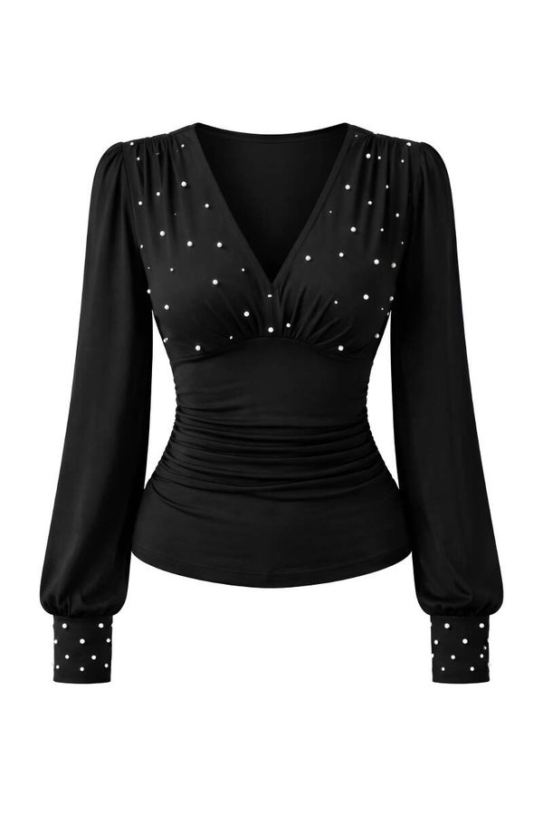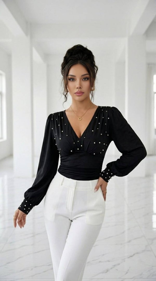 Mabelinda Luxury Pearl V-Neck Blouse