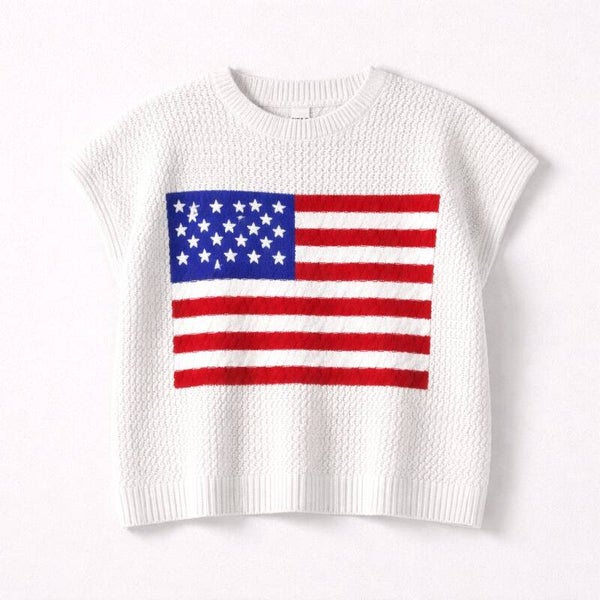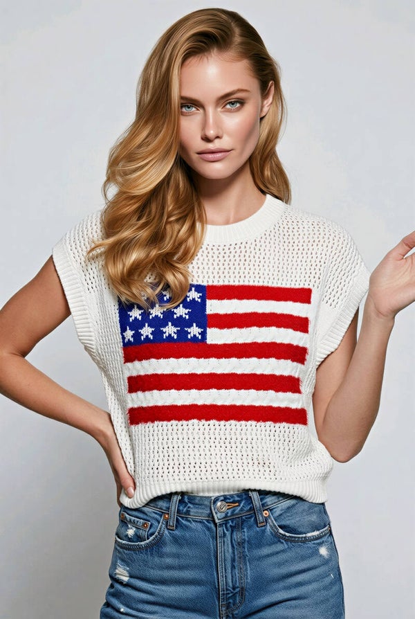 This lightweight knit crop top features an eye-catching Americana-inspired design with a breathable texture that’s perfect for warm days.