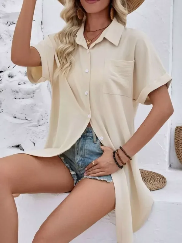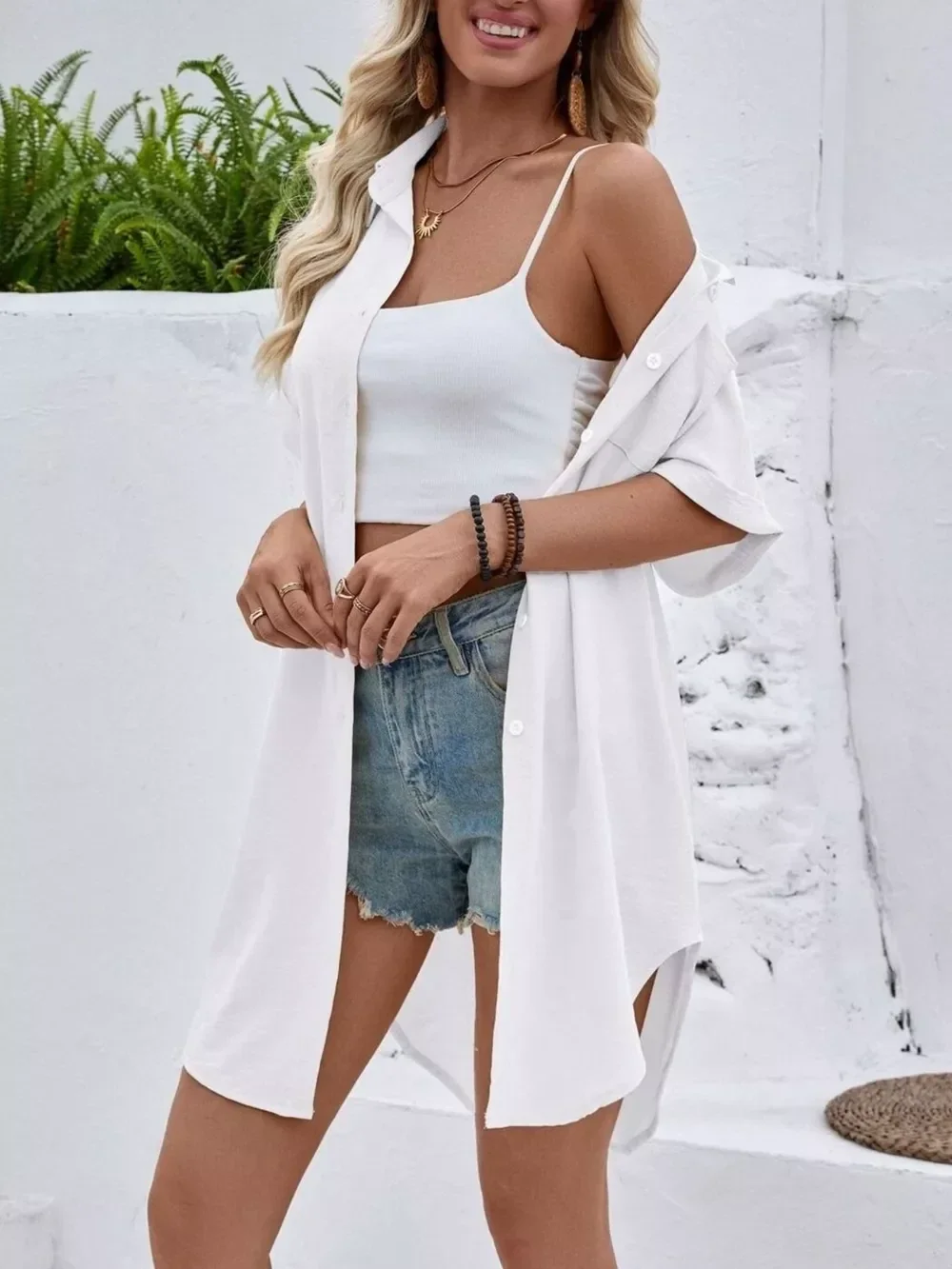 This longline button-down shirt is the perfect layering piece to give your look that relaxed but put-together vibe.