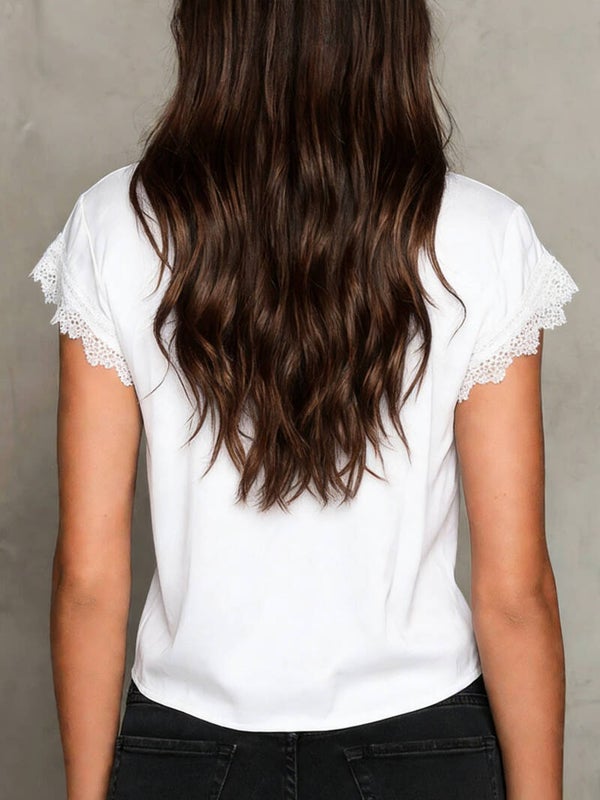 Turn every moment into a statement with this satin lace top, featuring a deep neckline and delicate lace trim for a feminine yet bold look.