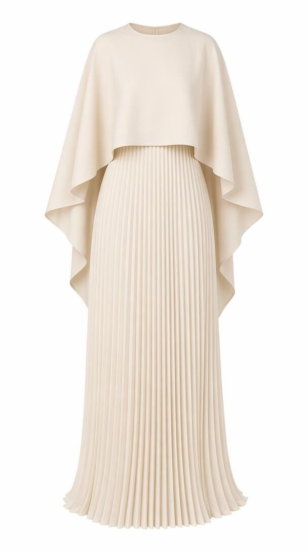 The Mabelinda Luxe Pleated Cape Maxi Dress is designed to make you feel elevated, confident, and unforgettable. Featuring a flowing pleated silhouette and a soft cape overlay, this piece brings movement, grace, and timeless beauty to every step.