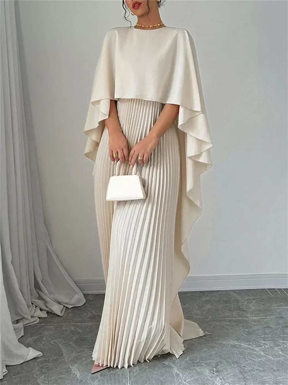 Mabelinda Luxe Pleated Cape Maxi Dress