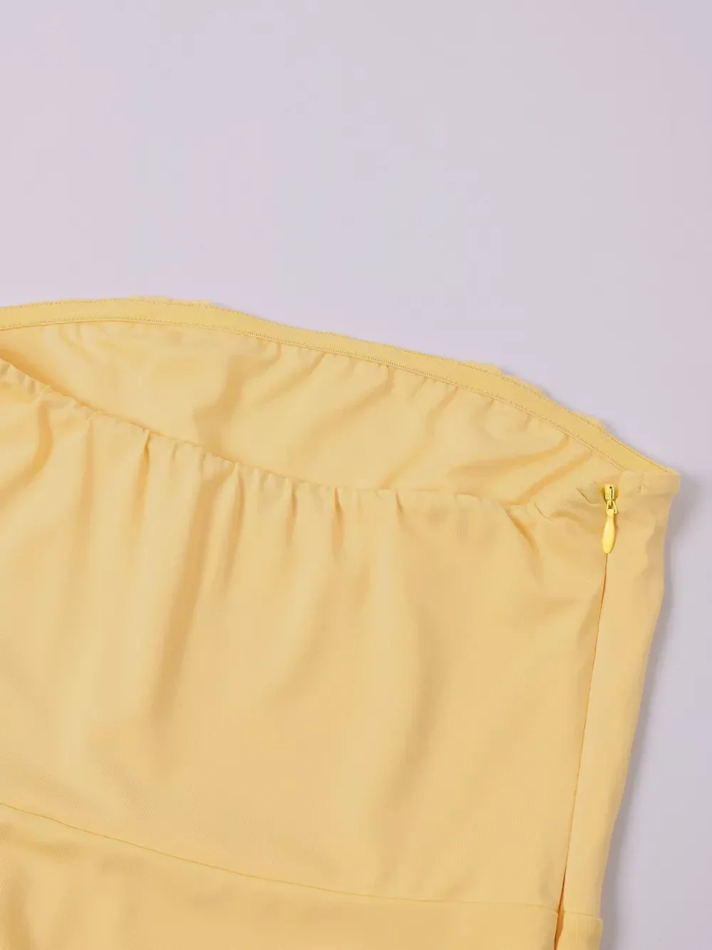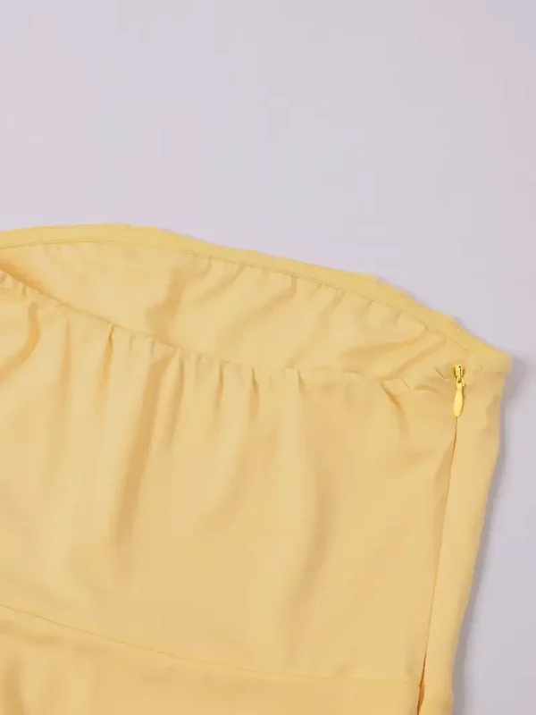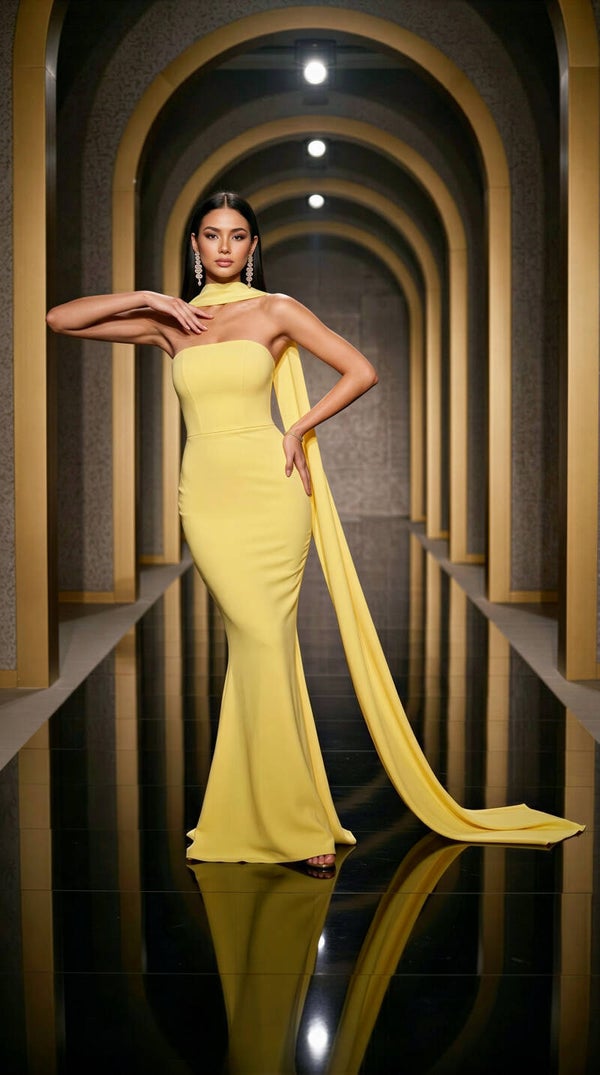 The scarf detail adds a unique, elevated touch—bringing movement and drama that instantly catches attention. The vibrant yellow tone glows beautifully on the skin, making you stand out the moment you walk in.