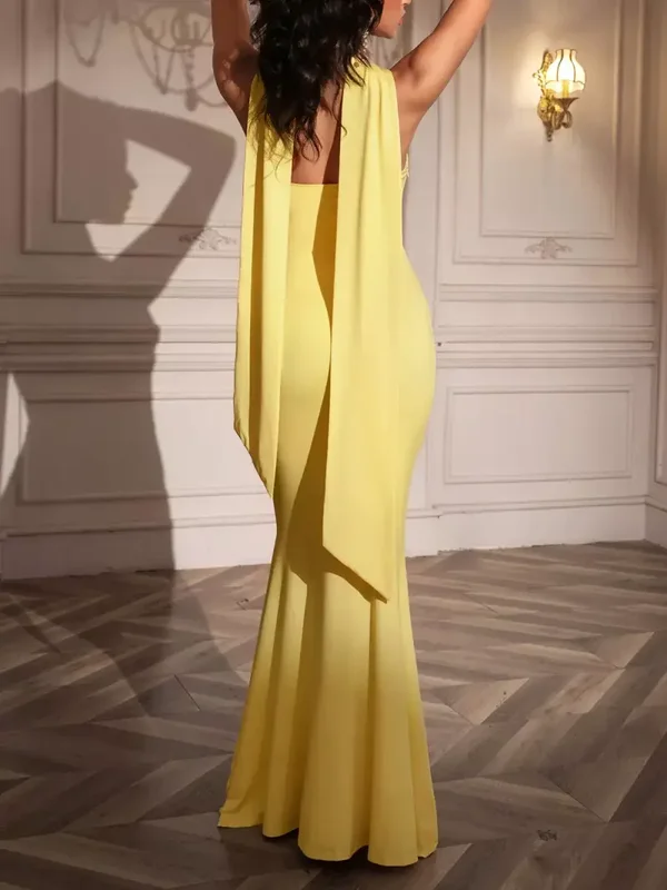 Mabelinda Golden Aura Scarf Detail Mermaid Maxi Dress