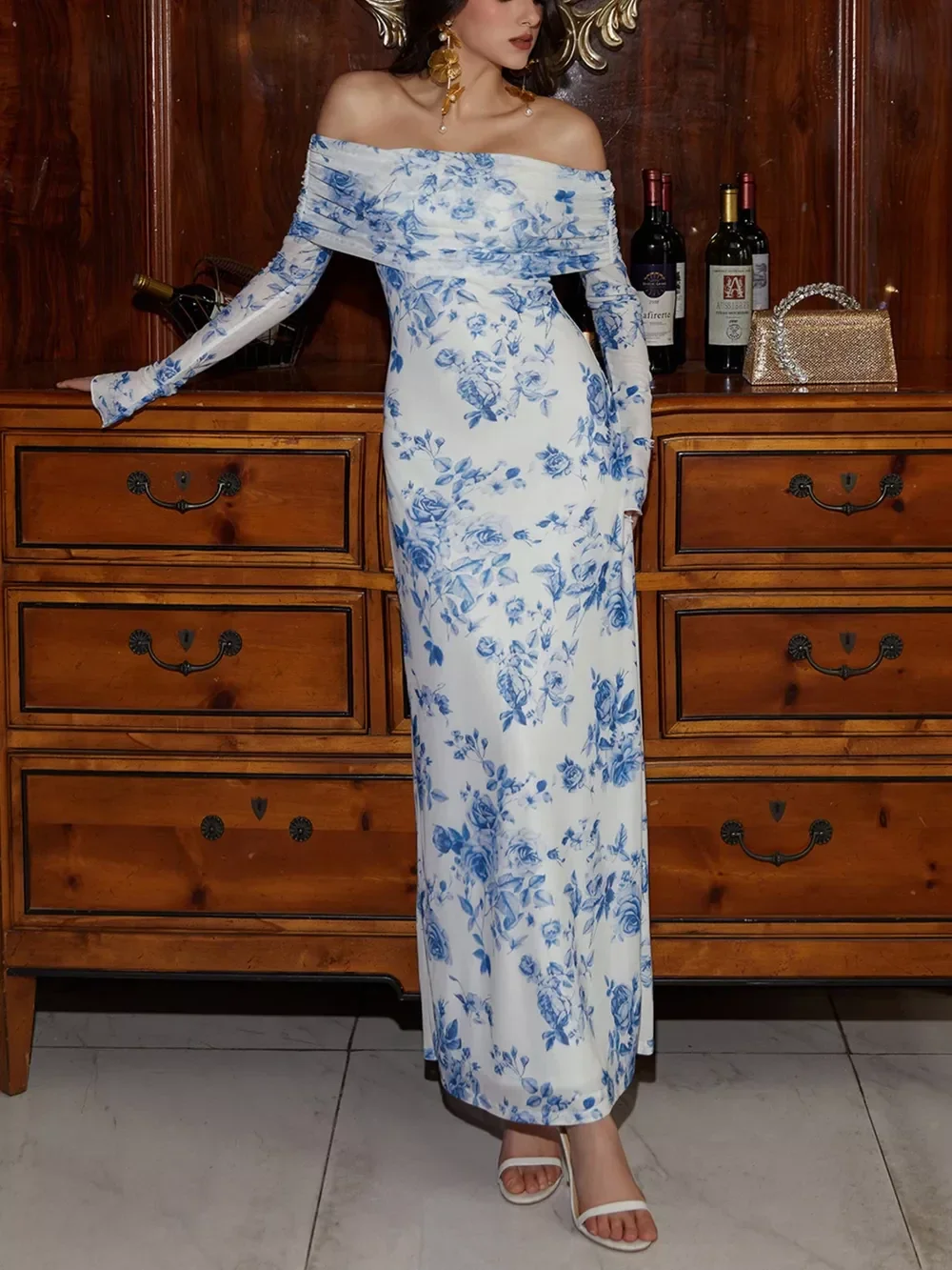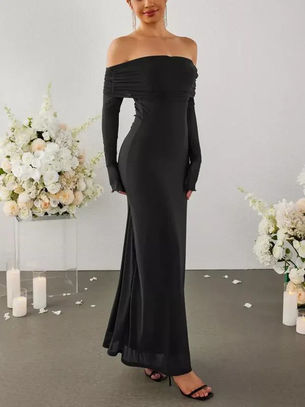 Mabelinda Elegant Off-Shoulder Ruched Maxi Dress